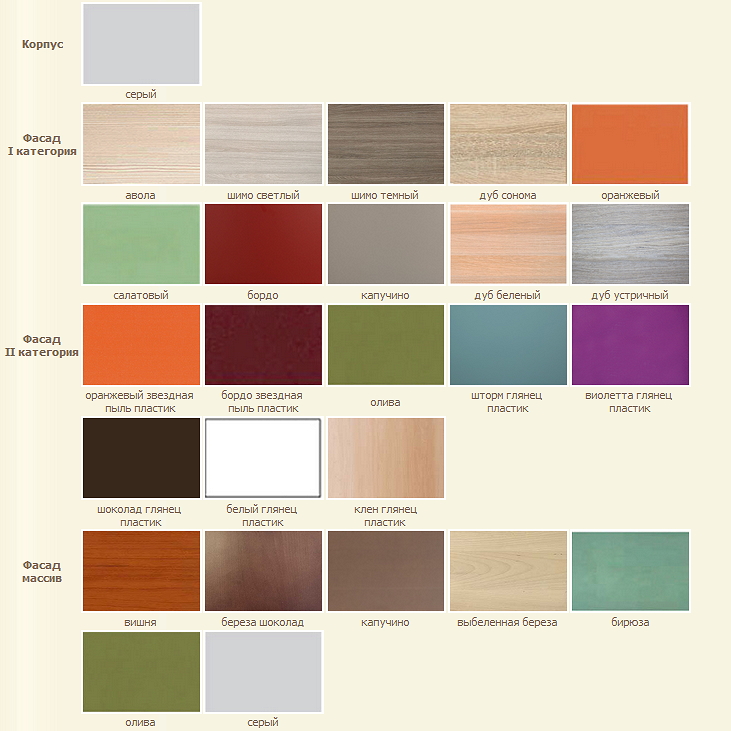 Фасад - II категория – МДФ (покрытой пластиком) или массив
