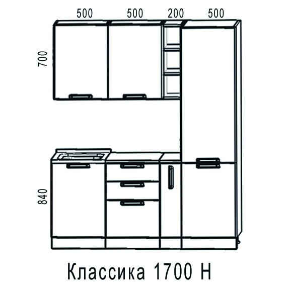 Кухня КЛАССИКА 1700 Н (Фасад I категории, столешница 26 мм)