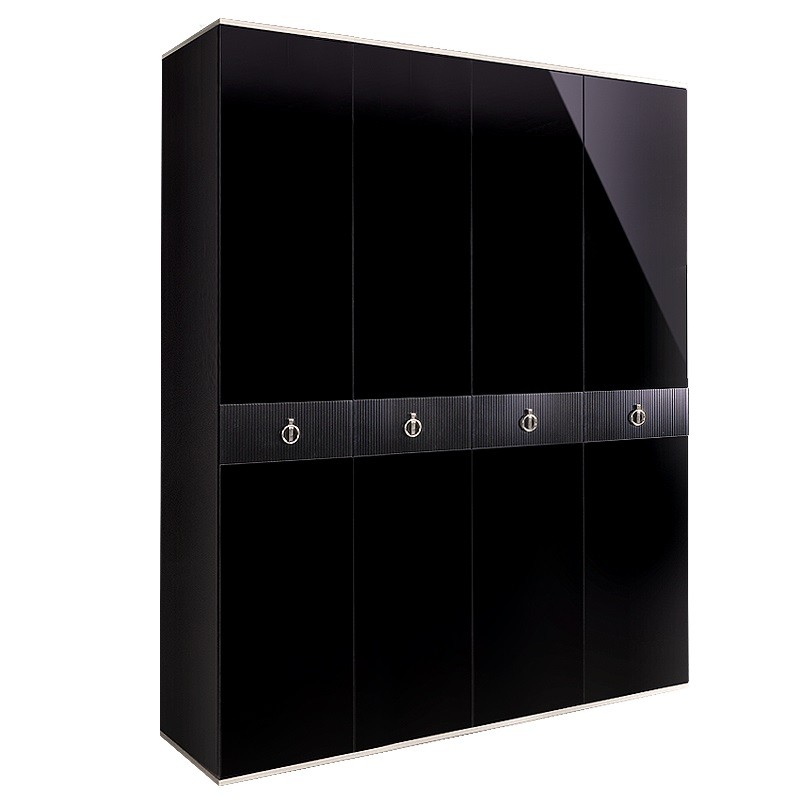 Шкаф 4-х дверный (без зеркал) для платья и белья РМШ2/4 (s) RIMINI SOLO (Черный/Серебро)