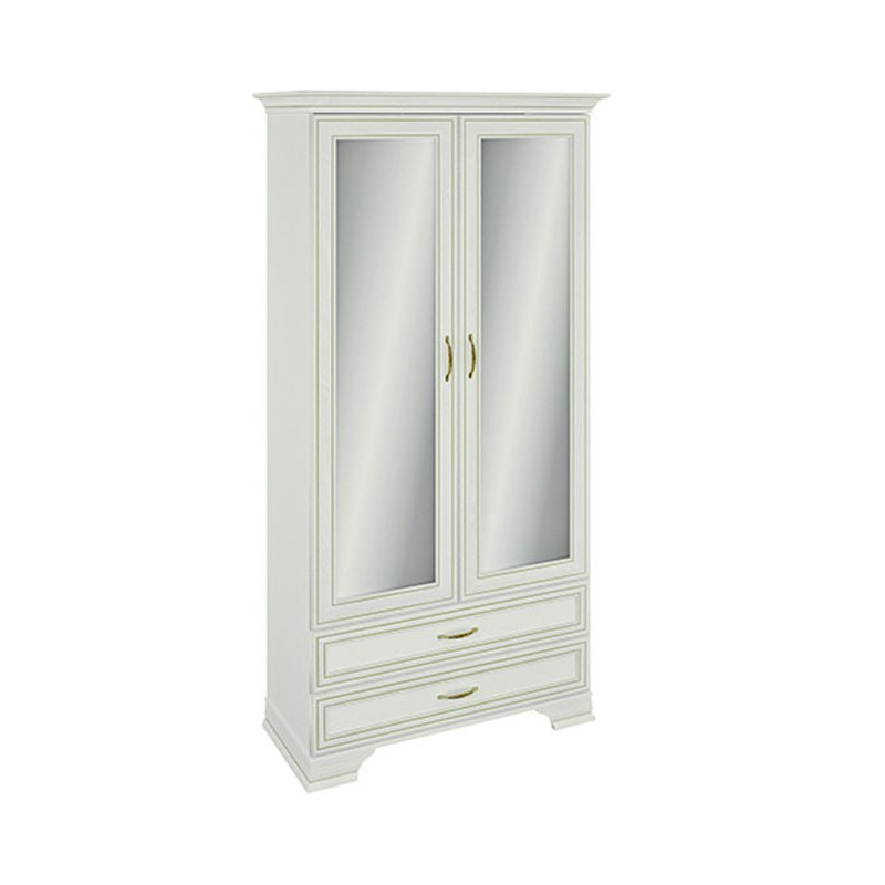 Шкаф 2-х створчатый комбинированный с зеркалом (440) КАПРИЗ (Белый/Ясень Анкор патина)