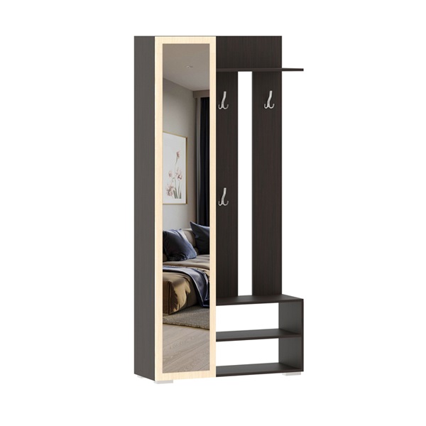 Шкаф с зеркалом и вешалкой комбинированный левый ПВ-3 (Дуб Венге/Дуб Белфорт)