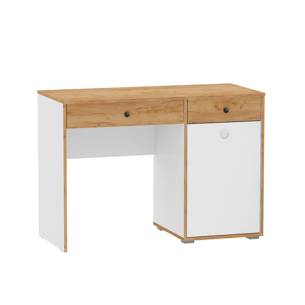 Стол письменный 12.42 ВУДИ рестайлинг (Белый премиум/Дуб Крафт Золотой)