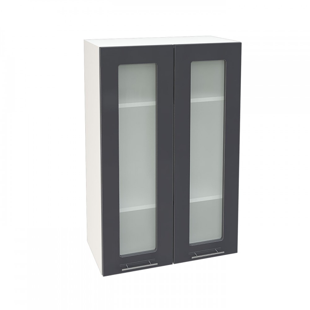 Шкаф верхний со стеклом высокий ШВС 609 ВАЛЕРИЯ 1 (Антрацит глянец) 600 мм