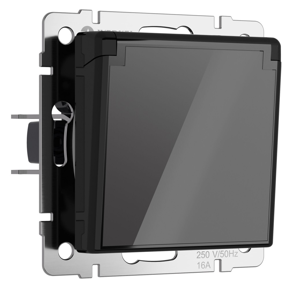 Розетка влагозащ. с зазем. с защит. крышкой и шторками (черный акрил) W1171248