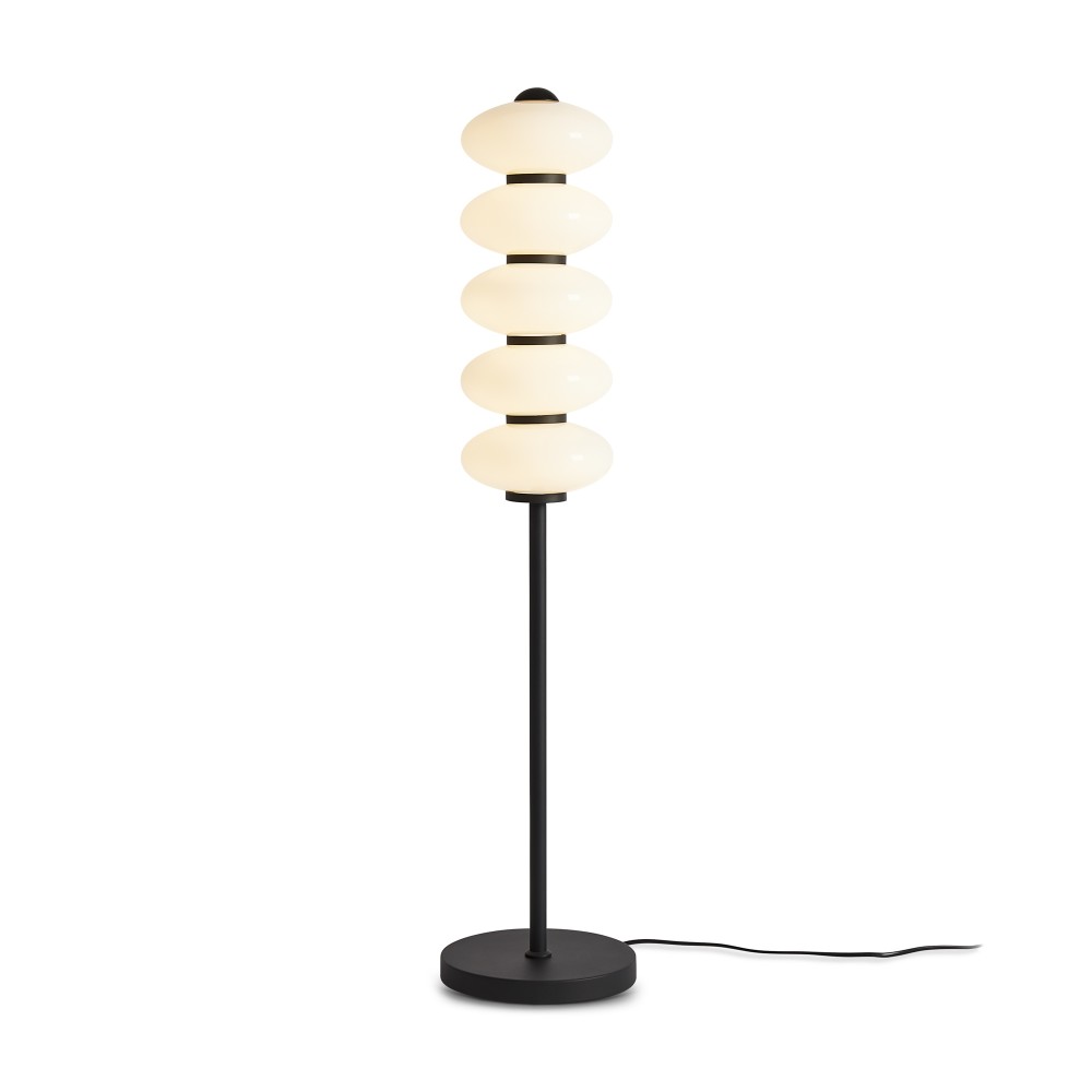 Материал арматуры — металл, цвет — черный. Напольный торшер оснащен LED-источником света. Цветовая температура 3000К.Индекс цветопередачи >82. Глянцевые белые стеклянные плафоны. Торшер высотой 1 метр. Сочетание ретро-дизайна и современных технологий: настенный светильник оснащен сенсорным управлением, а контрастное сочетание черной арматуры и белого стекла создает эффектную игру света.